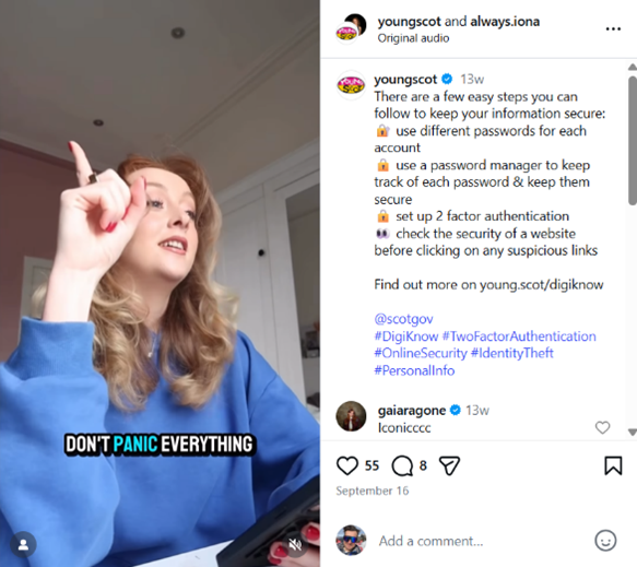 The first video, ‘Who’s Really Behind Your Profile?’, produced by popular content creator Iona, has already been shared on Instagram and TikTok and the campaign will continue to roll out across Young Scot’s digital channels, including TikTok, Instagram, Snapchat, YouTube, and the Young Scot app, reaching millions of young people. Additional resources will be published on the website, alongside newsletters and geographically targeted updates.