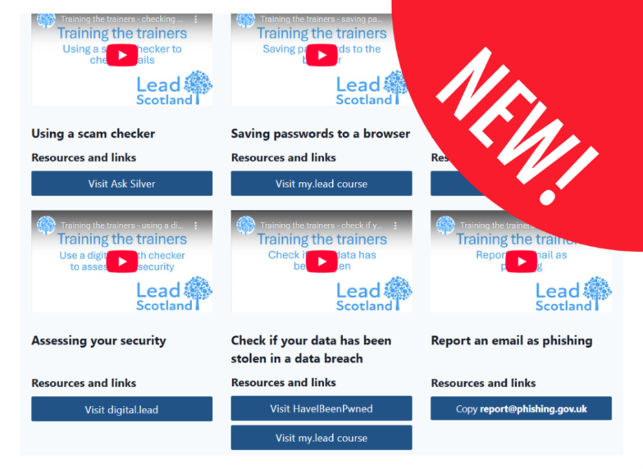‘Lead Scotland’ has released its new resource ‘Training the Trainers Hub’ – cyber courses now available via video and online at any time.